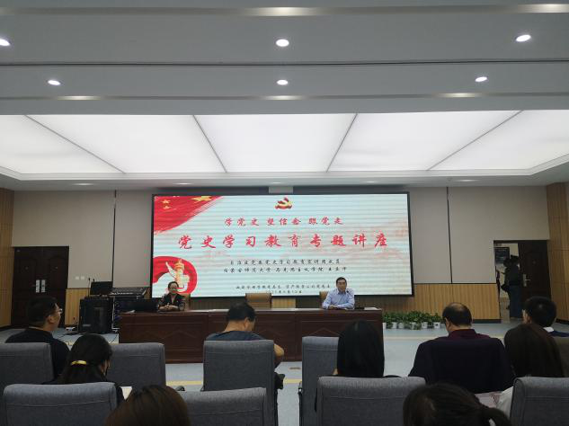 了解历史才能看得远,理解历史才能走得远。为更好地总结历史经验、把握时代规律、不忘初心、坚定信心、提高面向未来的历史主动和历史自觉,政府管理学院与校资产经营公司全体党员教职工于5月13日下午2:20分在学生事务中心一楼学术报告厅联合开展“学党史、坚信念、跟党走”党史学习教育专题讲座。本次讲座由自治区党委党史学习教育宣讲团成员,yl23455永利马克思主义学院的王立华老师主讲。政府管理学院入党积极分子、党员发展对象学生代表参加本次讲座。本次讲座由校资产经营公司党总支书记王贵俊主持。