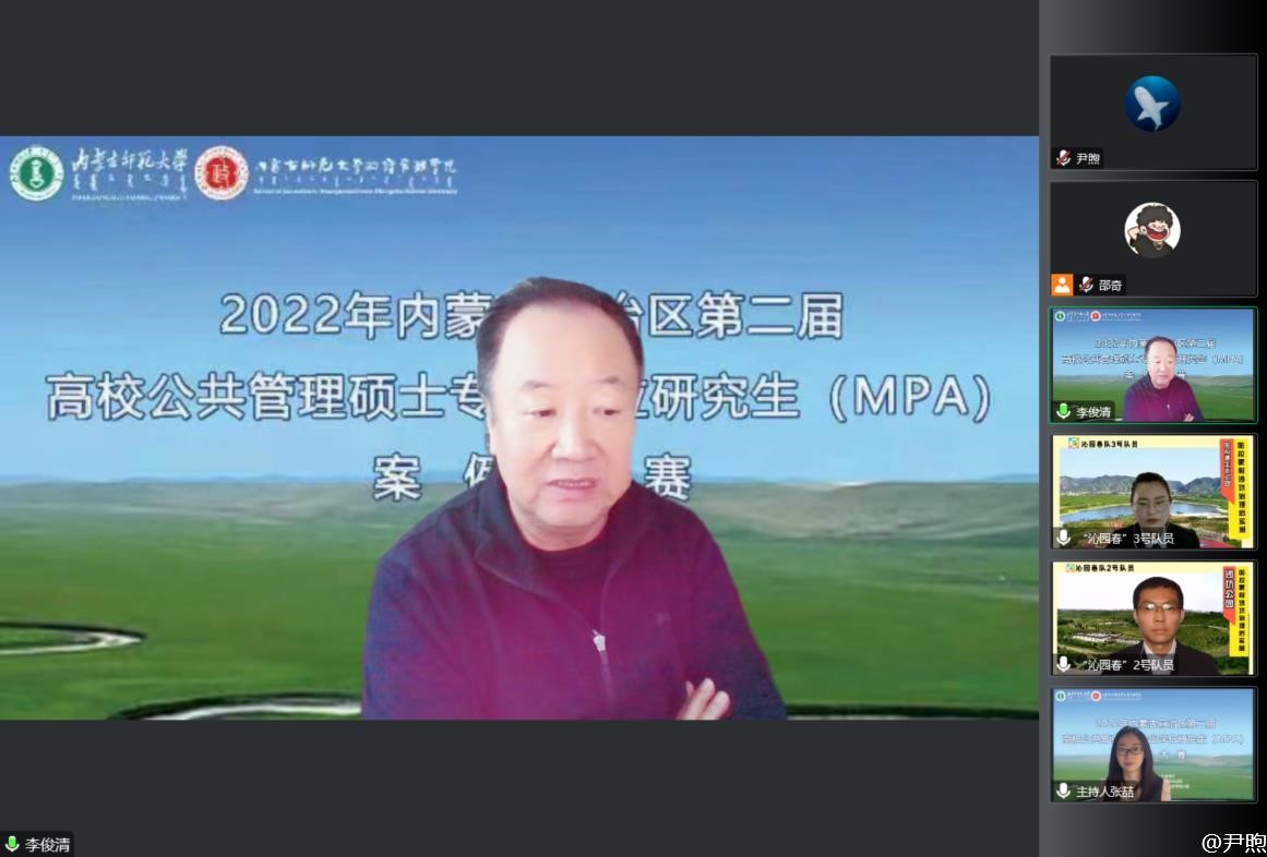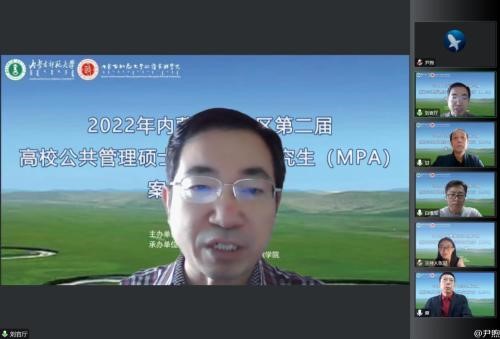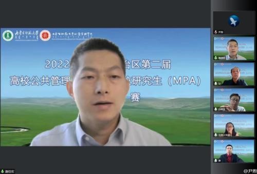10月9日,由自治区教育厅主办、我校研究生院和政府管理学院承办的内蒙古自治区第二届高校公共管理硕士(MPA)专业学位研究生案例大赛以线上方式举行。本次案例大赛经各高校的初赛选拔,共计9支队伍进入自治区决赛,中央民族大学国家安全研究执行院长、博士生导师李俊清教授、全国MPA教指委秘书处办公室主任谢佳宏老师、华东师范大学公共管理学院MPA中心主任谢炜教授、内蒙古大学公共管理学院院长、博士生导师白维军教授、内蒙古民族大学管理学院院长王强教授、内蒙古农业大学人文社会科学学院行政管理系主任乌云高娃副教授、yl23455永利政府管理学院甘月文研究员等7位专家担任本次比赛评委。内蒙古各MPA培养院校参赛队员、指导教师及在读MPA研究生共计80余人参加并观摩了此次比赛。
