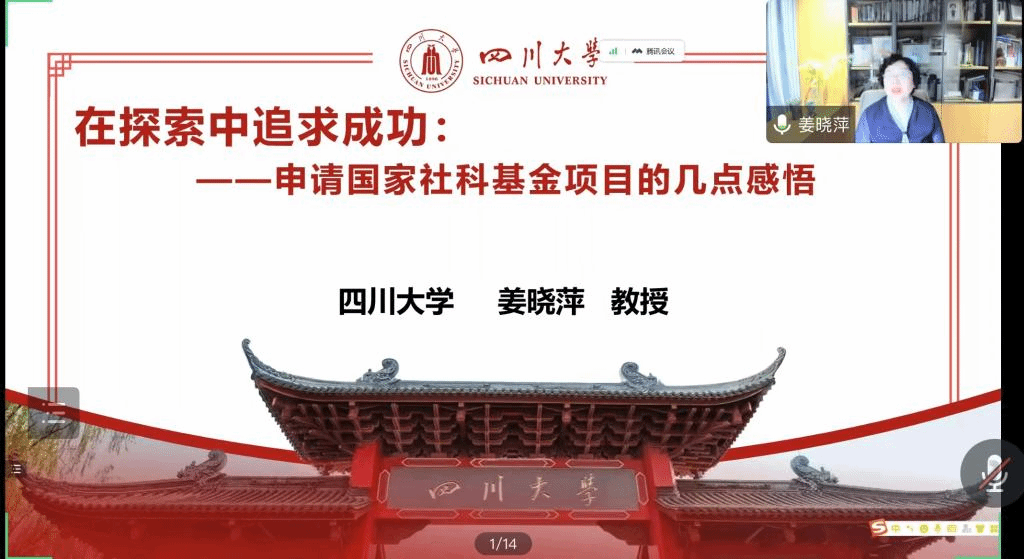 2023年4月12日,我院邀请四川大学公共管理学院博士生导师、国务院学科评议组成员、全国MPA教指委委员、国家万人计划入选者姜晓萍教授做客云端,开展题为“在探索中追求成功——申请国家社会科学基金项目的几点感悟”的专题学术讲座。学院领导、全院教师及我院部分学术型硕士研究生和MPA研究生160余人参加,讲座由副院长王永明教授主持。本次讲座既是我院“公共管理与公共政策”系列学术讲座之一,也是学院老师冲击国家社会科学基金项目的活动之一。