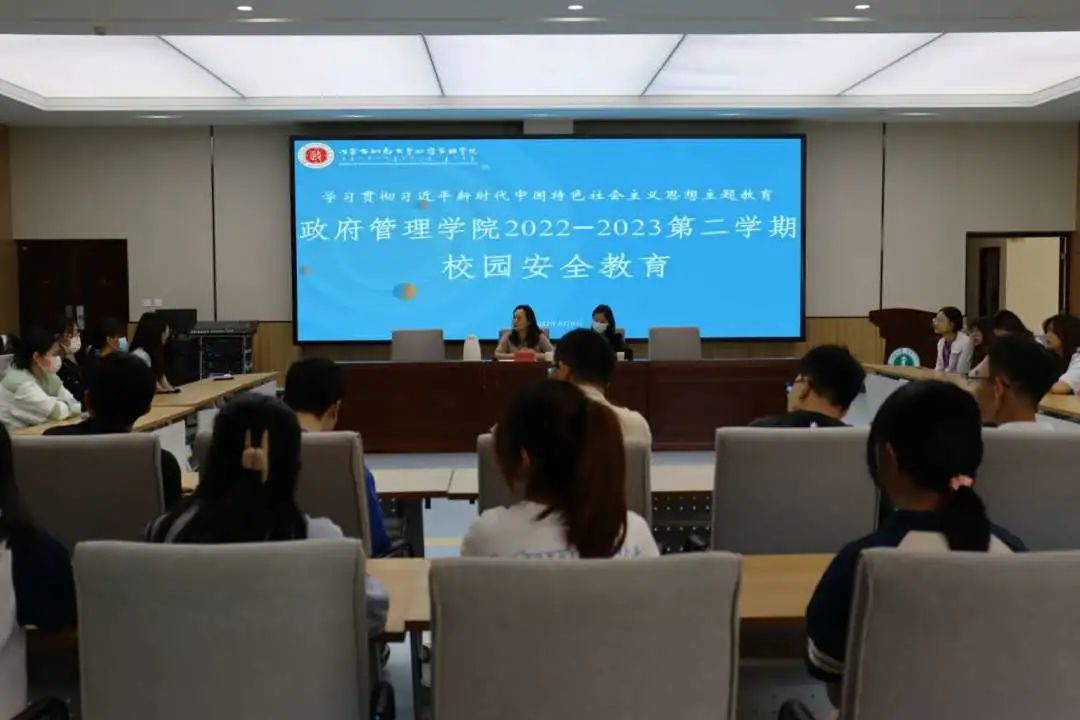 为了加强学生校园安全防范意识,保障学生在校安全,2023年6月6日,我院于学生事务中心和学院楼同步开展了“学习贯彻习近平新时代中国特色社会主义思想主题教育—政府管理学院2022-2023第二学期校园安全教育”主题讲座。