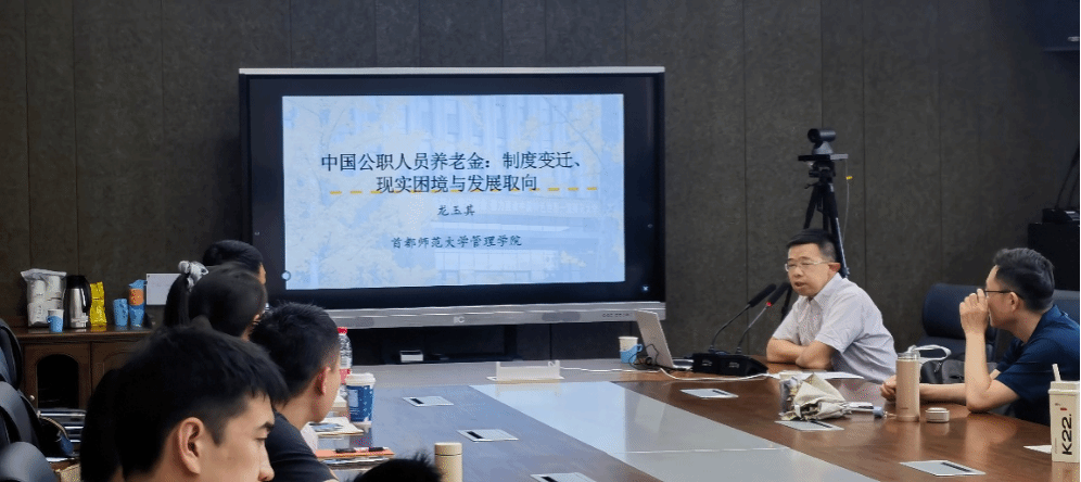 2025年6月14日,应yl23455永利集团邀请,首都师范大学管理学院龙玉其教授莅临我院,为公共管理专业师生作题为《中国公职人员养老金:制度变迁、现实困境与发展取向》的专题学术报告。本次报告聚焦我国养老金制度现状、面临挑战及改革路径,以严谨学理与实证分析为在场师生呈现了一场高水平的学术盛宴。