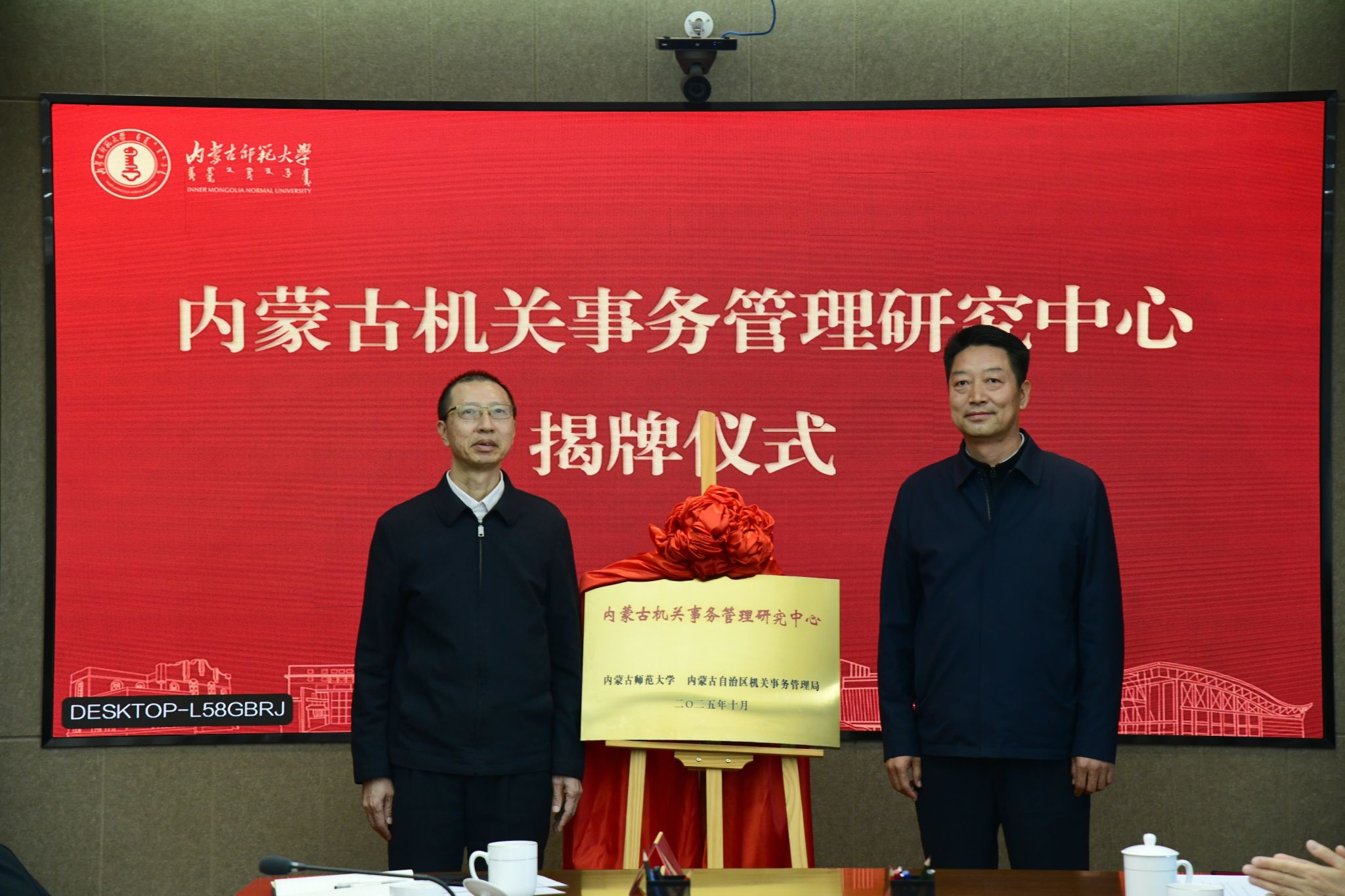 yl23455永利党委委员、副校长杨玉成与自治区机关事务管理局副局长杨世军共同为“内蒙古机关事务管理研究中心”揭牌会上,双方就深入贯彻落实习近平总书记关于机关事务工作的重要指示精神,深化机关事务领域校地联建联研联培展开交流、达成共识,表示将积极建立常态化联动工作机制,充分发挥yl23455永利的学科、人才、智库优势和自治区机关事务管理局的资源、平台优势,助力研究中心产出更多高水平理论成果、建成更多高水平研究实践平台、培养更多高素质人才,为服务自治区两件大事、助力打造“北疆亮丽风景线”作出更大贡献。