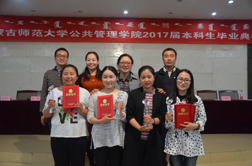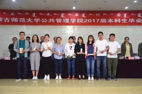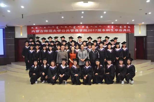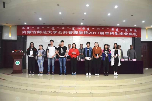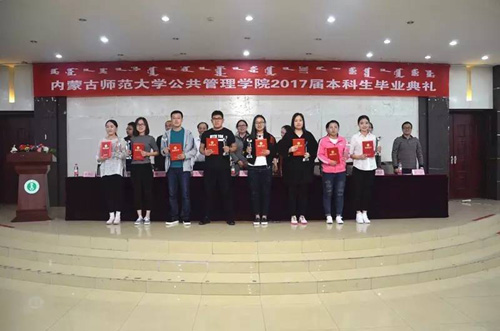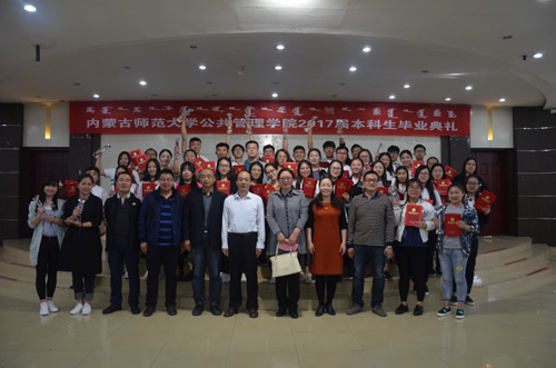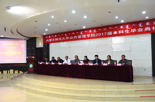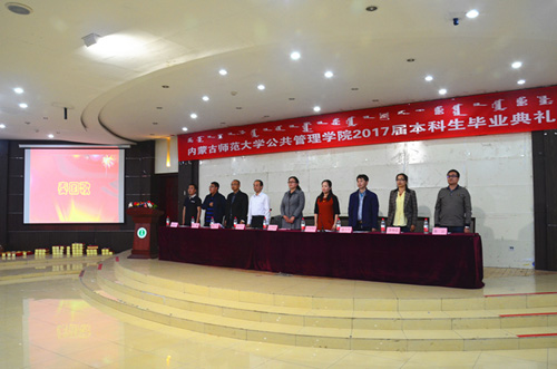 2017年5月13日下午4点,公共管理学院在盛乐校区图书馆一楼报告厅举行了2017届毕业生毕业典礼。公共管理学院党总支书记王雪莹、常务副院长甘月文、党总支副书记乌日古木拉、副院长张升、团总支书记富木仁、学工办主任秦云、公共管理系主任杨峰、工商管理系主任成小平、办公室主任李艳茹、学院教学秘书王庆鹏及部分教师代表和2017届全体毕业生参加了毕业典礼。