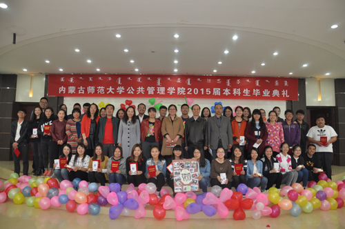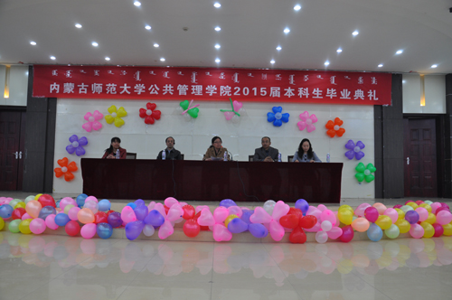 2015年5月10日下午,公共管理学院2015届本科生毕业典礼在盛乐校区图书馆一楼报告厅隆重举行。院领导、学院教师、各班班主任及300余名同学参加了典礼。大会由学院党总支书记王雪莹主持。