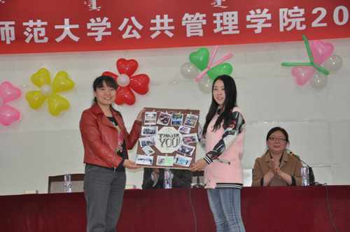 常务副院长甘月文在讲话中希望同学们勇敢地去面对今后的困难和挑战,创造属于自己的一片天地。副院长丁彩霞代表学院接收了毕业生为学院制作的纪念相册。