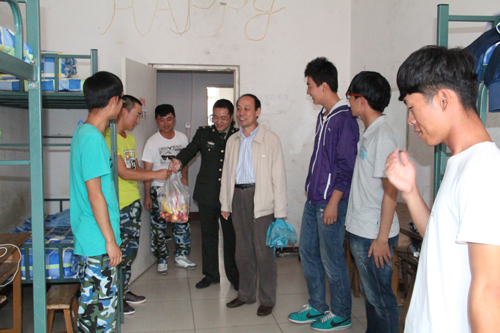 2013年9月18日11时,军训阅兵大会结束后,我院党总支书记王雪莹、常务副院长甘月文、党总支副书记乌日古木拉、团总支学工办及新生班主任前往学生公寓为我院2013级新生送去月饼和水果等节日慰问品,表达中秋祝福。