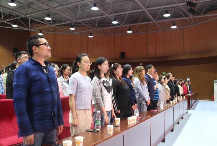 全体师生在签名墙签名后,毕业典礼在庄严的国歌声中拉开帷幕。