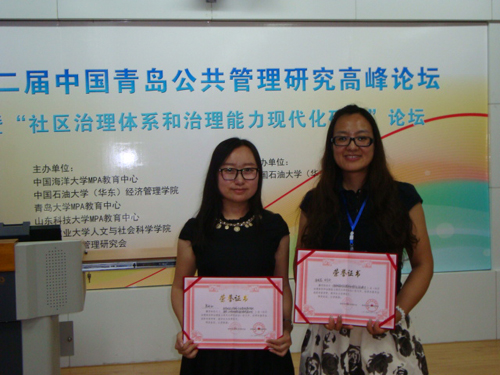 我院教师金晓蕊、甘月文及MPA研究生原妍如应邀参加了会议。金晓蕊、甘月文提交的论文《我国城市社区治理主体和谐共生关系探讨》、原妍如提交的论文《政府购买公共服务:社区建设发展的有效途径》均获会议颁发的优秀论文奖。在互动交流环节,我校MPA研究生原妍如的发言受到会议点评专家的高度赞许。