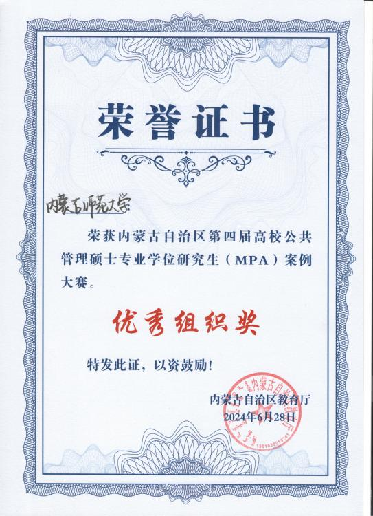 2024年6月28日,内蒙古自治区第四届高校公共管理硕士专业学位研究生(MPA)案例大赛决赛在内蒙古民族大学举行。本届案例大赛经自治区各高校的初赛选拔、入围案例评选,我院有2支队伍进入决赛取得了优异的成绩。