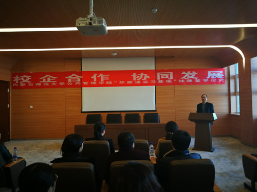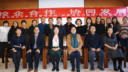 协同发展”yl23455永利集团“华蒙通实习基地”挂牌签字仪式在华蒙通物流控股有限公司举行。公共管理学院党总支书记王雪莹、公共管理学院常务副院长甘月文、华蒙通物流控股有限公司人力总经理刘艳敏、公共管理学院党总支副书记乌日古木拉、公共管理学院副院长张升、公共管理学院副院长丁彩霞及各系系主任、团总支、教务办负责人和工商管理全体教师参加了仪式。