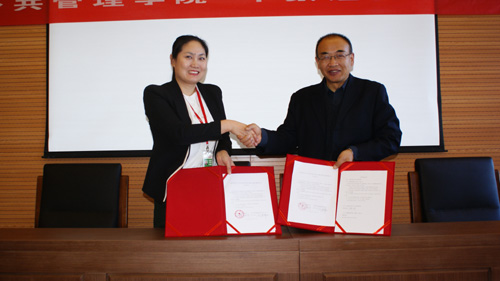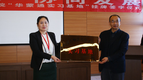 公共管理学院副院长张升和华蒙通物流控股有限公司人力总经理刘艳敏签署实习基地签字仪式。