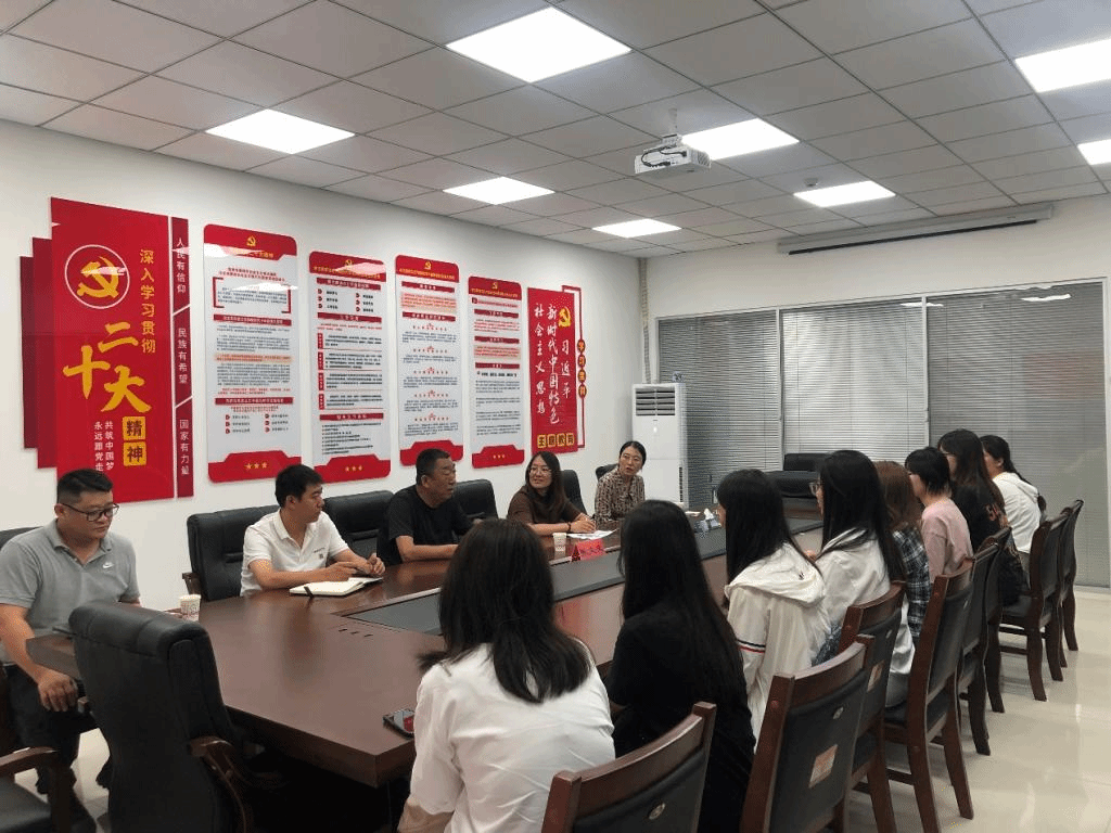 赛罕区人社局局长张永军与我院实践教学部主任金晓蕊、劳动与社会保障系系主任王瑞娟及实习的学生们进行座谈