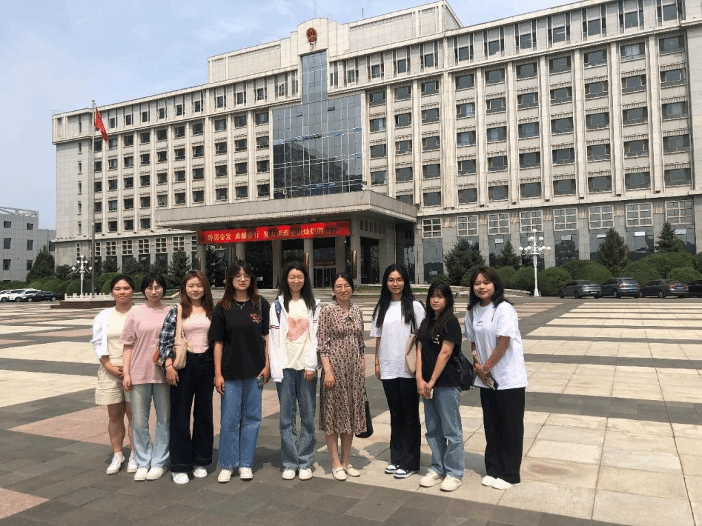 劳动与社会保障系系主任王瑞娟和学生们在赛罕区政府大楼前的合影