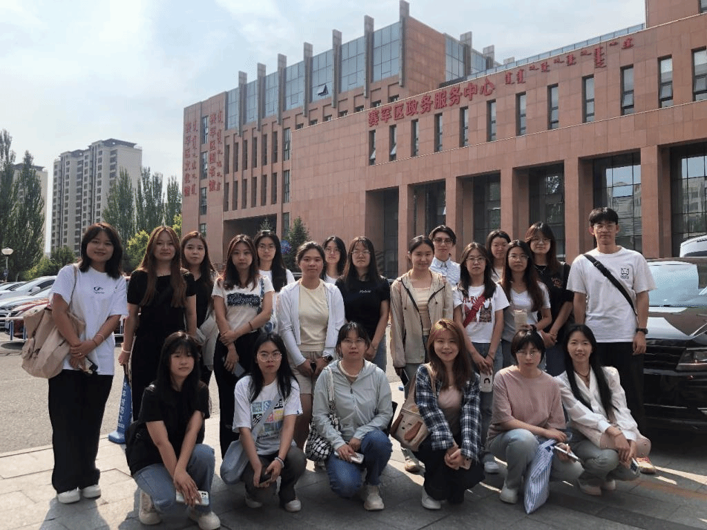 参加赛罕区人社局实习的同学在赛罕区政务服务中心楼前合影