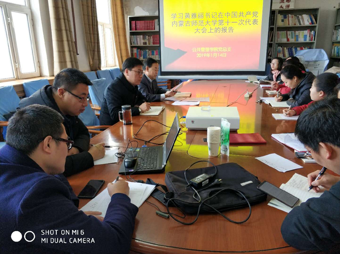 2019年1月14日上午,在党代会休会期间,公共管理学院党总支在学院资料室召开黄雅丽书记党代会报告学习传达会。樊荣忠书记指出,yl23455永利第十一次党代会在习近平总书记带领全国人民奔跑追梦的新征程中,在全校三万余名师生的热切期盼中于昨天胜利召开,这是一次勠力同心、聚力凝心的盛会,也是一次以人为本、以本为本的盛会,更是一次守正创新、砥砺前行的盛会。黄雅丽书记一个多小时的报告,实事求是地总结过去,客观透彻地分析问题,科学合理地谋划未来,愿景蓝图有血有肉、绘声绘色、民生福祉令人鼓舞、令人振奋。他号召大家积极开展讨论学习,认真领会报告精神。