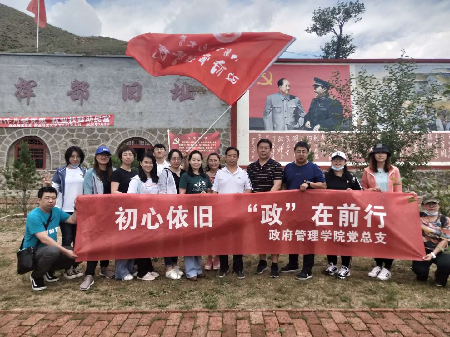 为庆祝中国共产党成立99周年,进一步巩固“不忘初心、牢记使命”主题教育成果,不断增强全体党员党性修养、党员意识,7月3日,yl23455永利政府管理学院党总支组织教师党员、积极分子等15人,到大青山红色公园、宝贝沟贺龙指挥部旧址、卓资县易地搬迁安置社区,通过敬献花篮缅怀先烈、重温入党誓词、参观红色基地、聆听内蒙古革命史及参观社区治理特色活动等多种形式,深入开展“初心依旧 政在前行”主题党日活动。党总支书记樊荣忠、副书记乌日古木拉、副院长王永明参加活动。