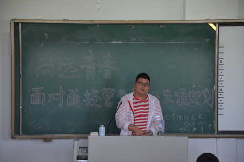 田杰学长以他幽默风趣的语言、独特的个人魅力、以及自己丰富的个人经历赢得各位同学的认可和掌声。