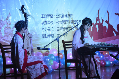 到场的嘉宾有公共管理学院党总支书记王雪莹老师、党总支副书记乌日古木拉老师、公共事业管理系主任杨峰老师、工商管理系主任成小平老师、团总支书记富木仁老师、教师杨艳老师以及各兄弟院系学生会主席。此次晚会在动感十足的街舞表演中拉开序幕,同学们各种各样的节目令人应接不暇:深情独唱、逗趣话剧、热情舞蹈、诗意朗诵、B–box秀、以及充满古风的乐器合奏表演都赢来台下观众阵阵的呼声与掌声。