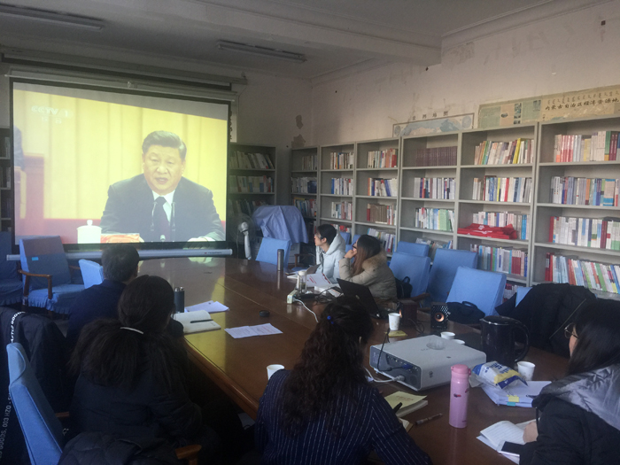 学院党总支书记樊荣忠、党总支副书记、副院长乌日古木拉组织部分教职工,学工办王洁琼老师组织学生分别在赛罕和盛乐两个校区集中观看了庆祝改革开放40周年大会直播,聆听习近平总书记的重要讲话。