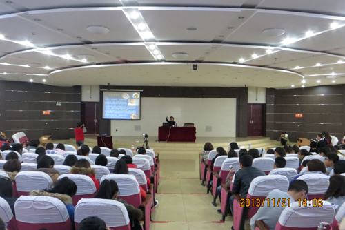 11月21日下午,我院在图书馆一楼报告厅举办了“我健康,我快乐,我幸福”大学生生理健康知识讲座。学校计生办副主任檀晶老师专程赴盛乐校区支持本次活动的开展。团总支书记富木仁老师参加并组织三百余名同学聆听了讲座。讲座由学院工会代主席、计划生育负责人王雪莲老师主持。活动得到了学院党总支的大力支持和指导。